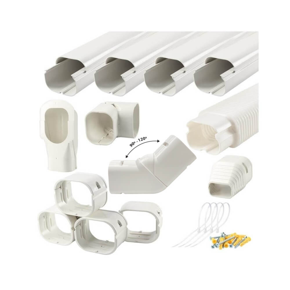 JUEGO DE MOLDURA PVC PARA A/C 3""x2.5""x13.3" 4-Ductos 1-Esquina 1-FlatBend90 4-Uniones 1-Codo90 1-EndCover 1-FlexJoint InstKit