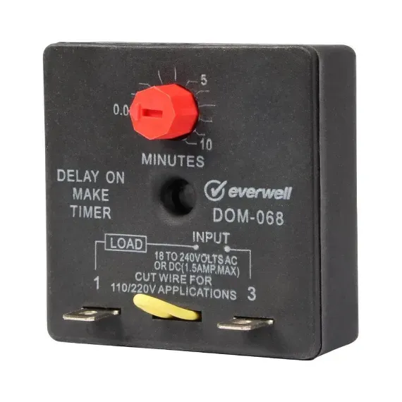 TEMPORIZADOR DE ENCENDIDO CON RETARDO 18-240 VCA 50/60 HZ 1,5 AMP TIEMPO DE RETARDO 0,03 - 10 MIN